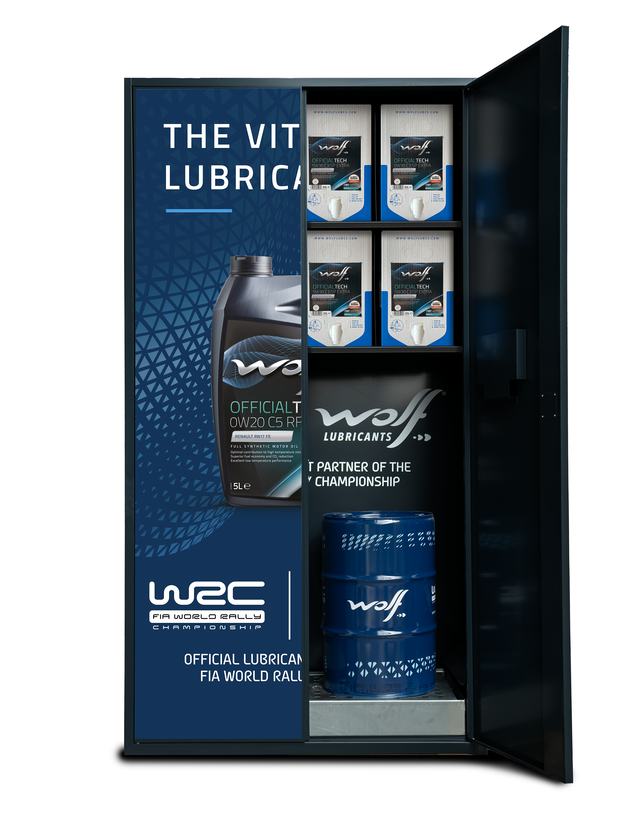 Atiende las especificaciones principales de los vehículos de renting más modernos con hasta 10 referencias de aceite. Esta herramienta almacena 2 bidones de 60L para productos de mayor rotación y 8 envases de 20L para aceites más específicos